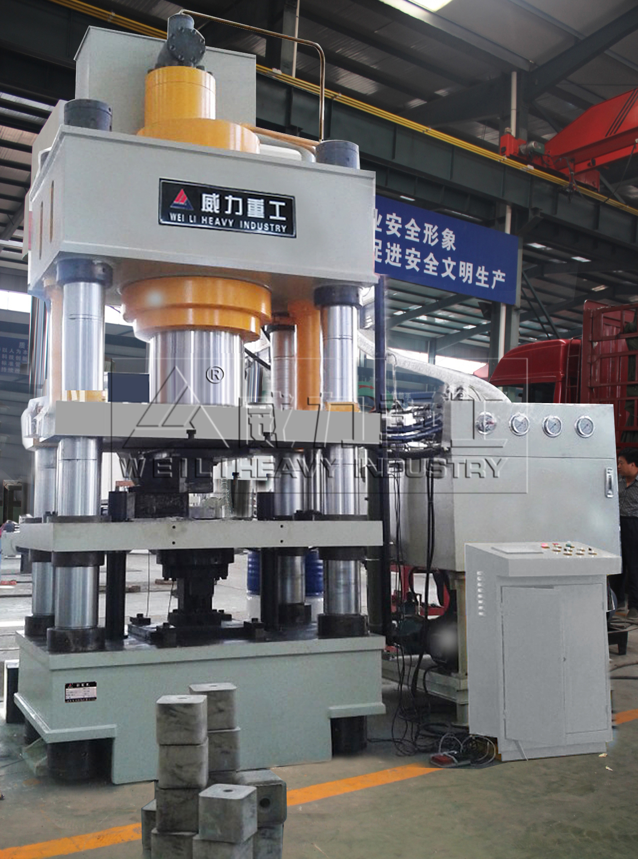 牛羊舔磚專用液壓機特點:三梁四柱結構,經濟實用,液壓控制采用插裝閥集成系統,減少泄露點,動作可靠,使用壽命長,可實現定壓和定程兩種成形工藝,具備保壓延時功能,工作壓力行程可在規定的范圍內調節,采用按鈕集中控制,可實現手動、半自動、自動三種操作方式。
