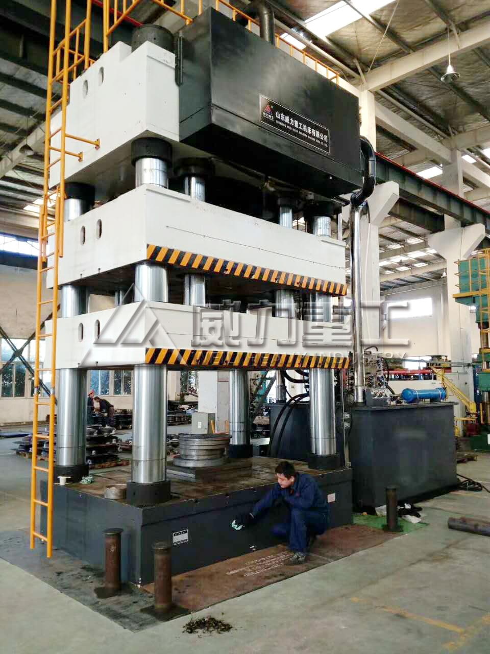 機身為三梁四柱結構,采用全鋼板CO2焊接,焊接后通過回火振動處理,確保機身永不變形。液壓系統位于機身內,外型美觀,操作方便。該系列壓機設有獨立的液壓與電器控制系統,采用按鈕集中控制,可實現定程和定壓兩種成型工藝,具有壓力顯示和行程、壓力調節等功能。而且導柱、活塞桿中頻淬火后鍍硬鉻處理,永不生銹拉毛,油泵進油口裝有獨特的過濾裝置,確保油泵和閥的使用壽命。油路連接采用進口高壓軟管,大大降低機器噪聲。